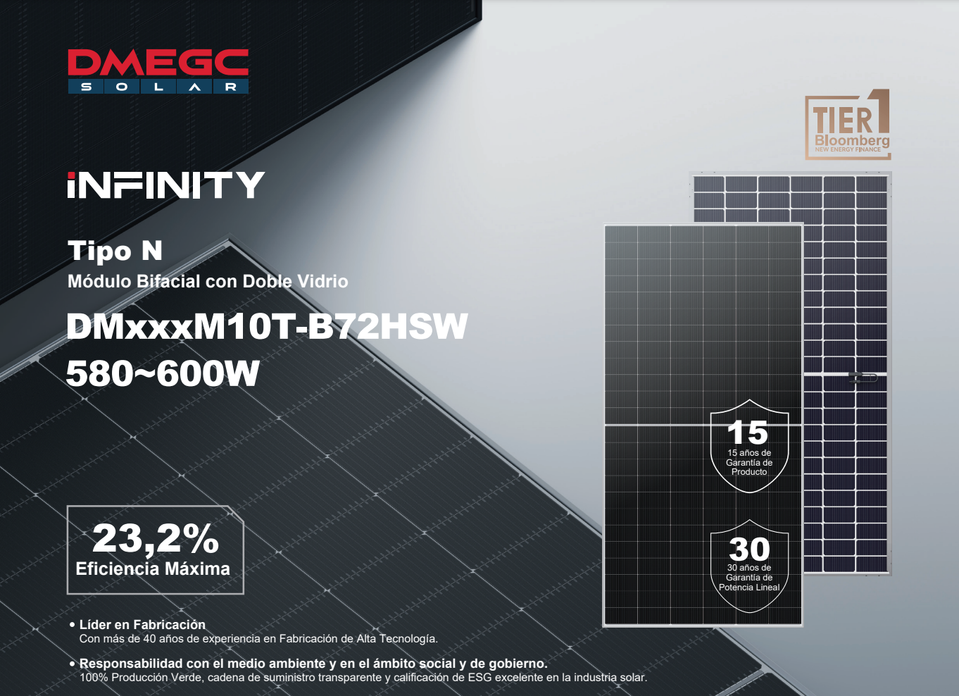 - Fabricado por DMEGC, uno de los principales fabricantes de módulos solares de alta calidad.
